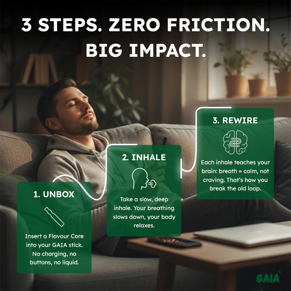 Most cravings come from routine — the hand movement, the pause, the inhale. GAIA gives you a healthier ritual to replace that old loop.