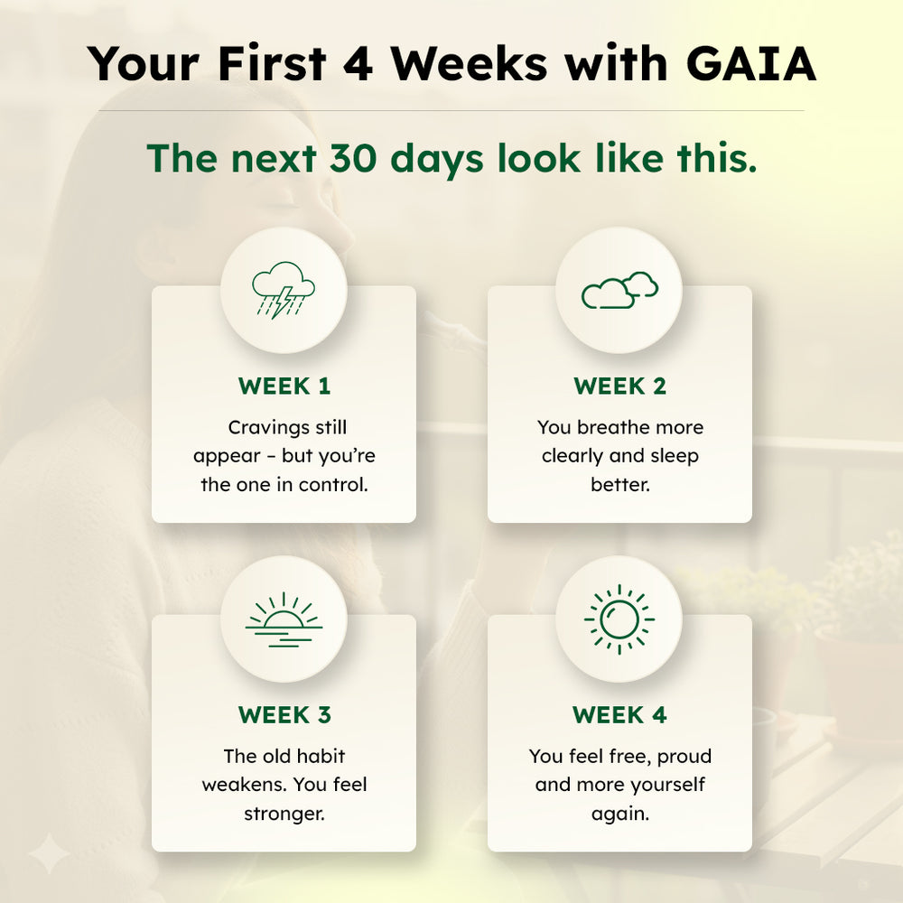 With every inhale, your brain learns to connect calm — not craving — to your ritual. The more you use GAIA, the easier it becomes to break old habits for good.
