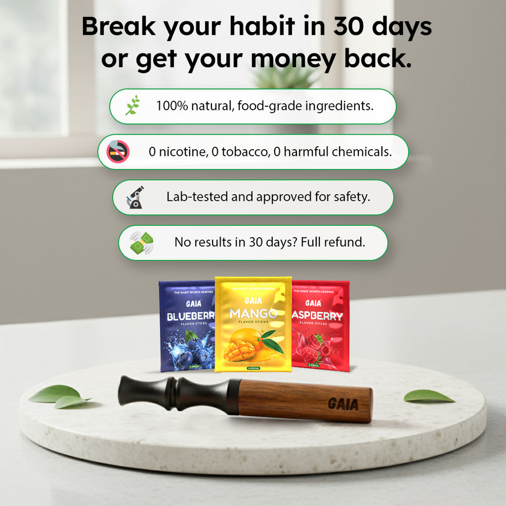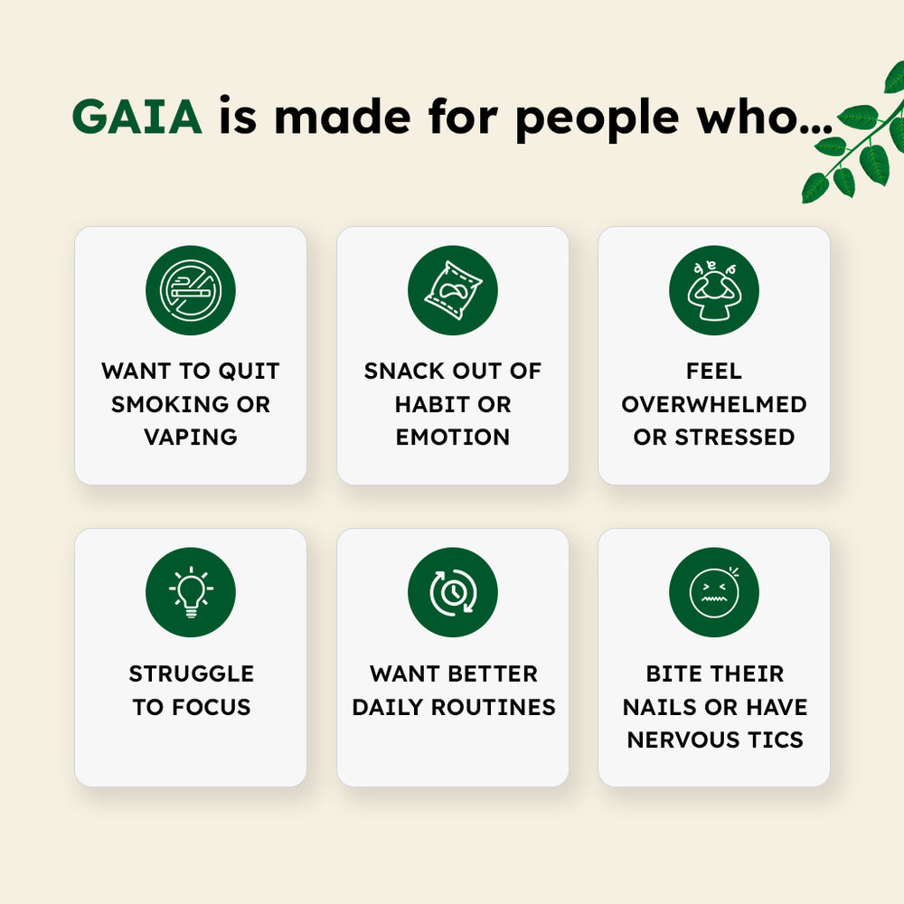 GAIA satisfies the same urge for hand-to-mouth action — breaking the nervous habit effortlessly over time.