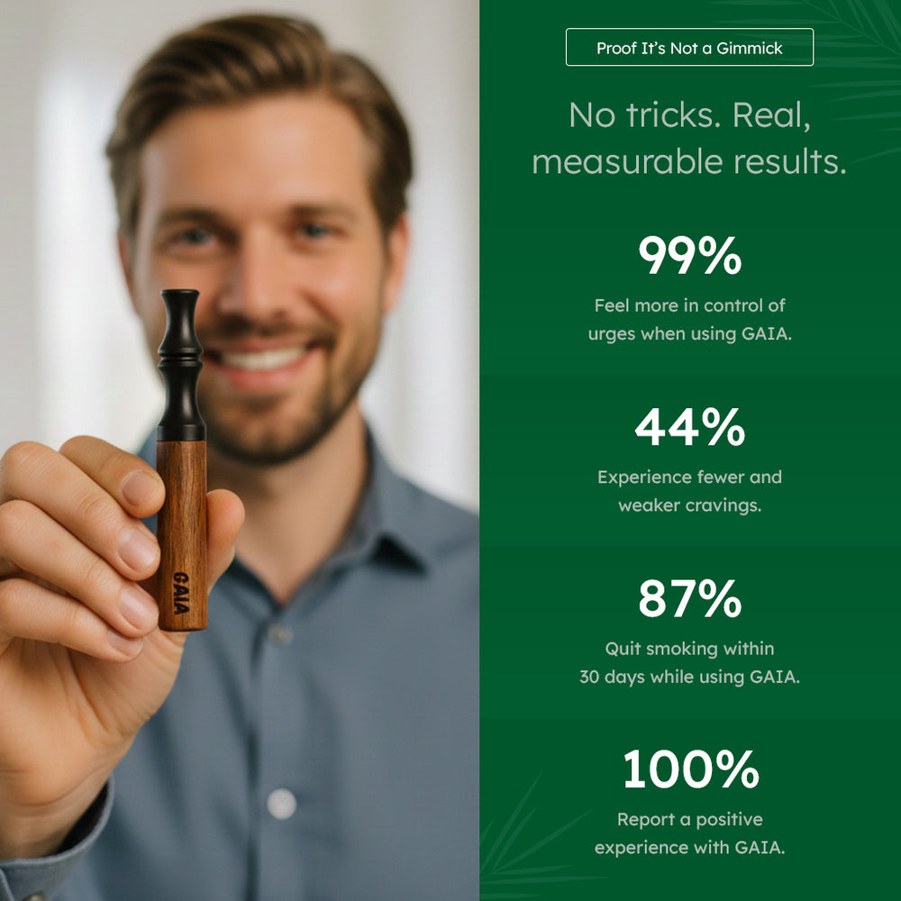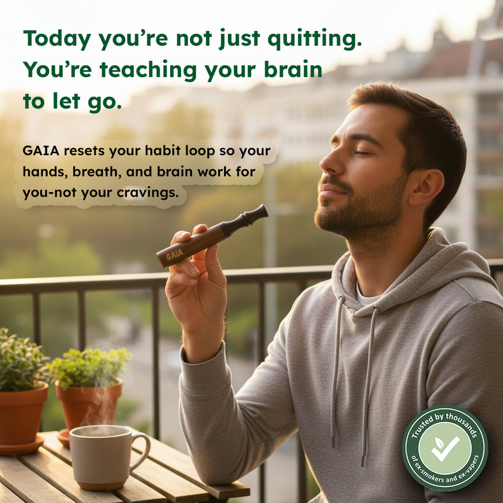 Because GAIA helps you retrain the habit loop — not just replace it. Every craving is a mix of stress, routine, and muscle memory. GAIA targets all three: it keeps your hands and breath engaged, delivers a satisfying inhale, and helps your brain link calm instead of craving. It’s a behavioral reset disguised as a habit you actually enjoy.